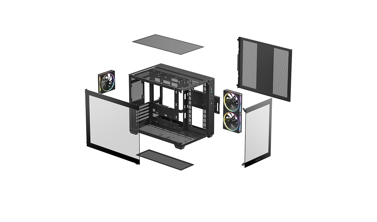 CG330 3F — это панорамный корпус Micro-ATX с двухкамерной конструкцией для лучшей вентиляции и организации. В нем предустановлены три вентилятора ARGB, которые создают яркую витрину для вашего оборудования.