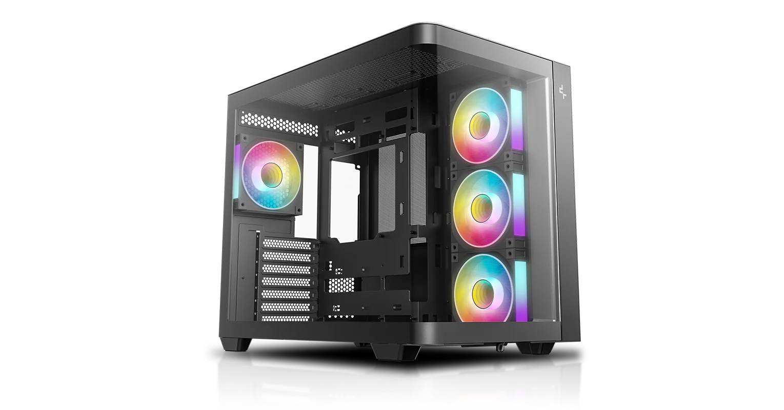 CG530U 4F — это панорамный корпус с изогнутым стеклом и двухкамерной конструкцией. Благодаря четырем предустановленным вентиляторам ARGB он полностью оснащен для эффективного охлаждения и подсветки.