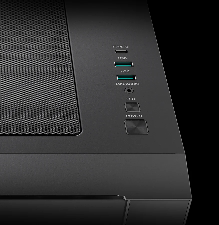 Верхняя панель ввода-вывода обеспечивает удобный доступ к двум портам USB 3.0, порту Gen2 Type-C и комбинированному разъему для подключения аудиоустройств и микрофона.