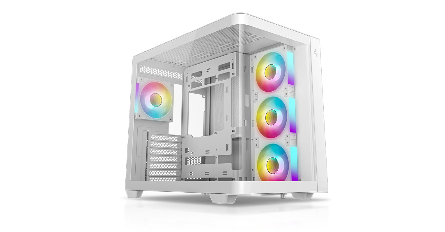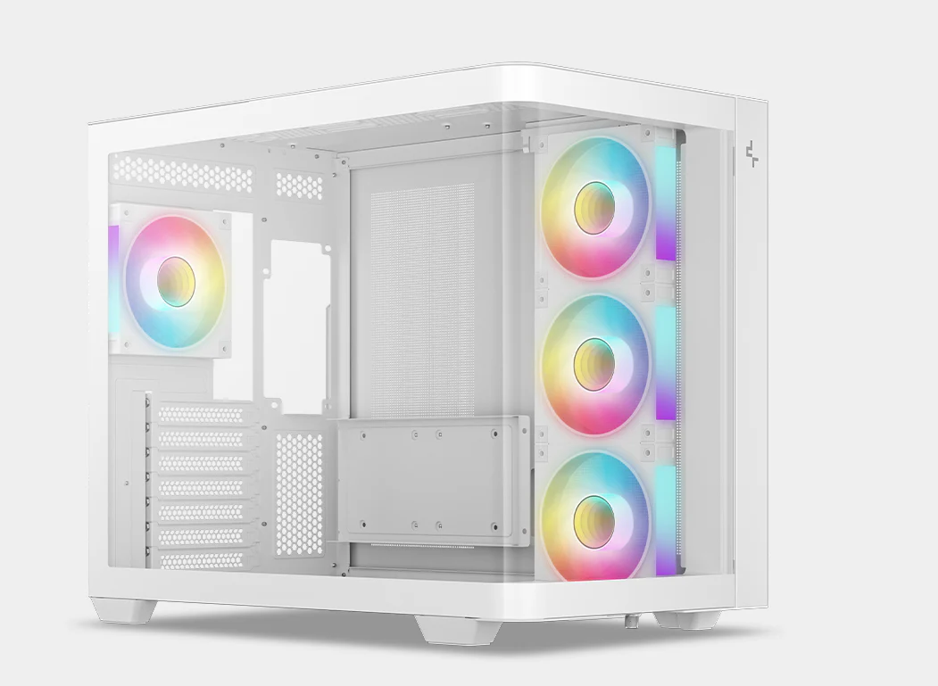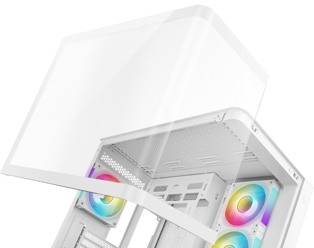 CG530U 4F WH — это панорамный корпус с изогнутым стеклом и двухкамерной конструкцией. Благодаря четырем предустановленным вентиляторам ARGB он полностью оснащен для эффективного охлаждения и подсветки.
