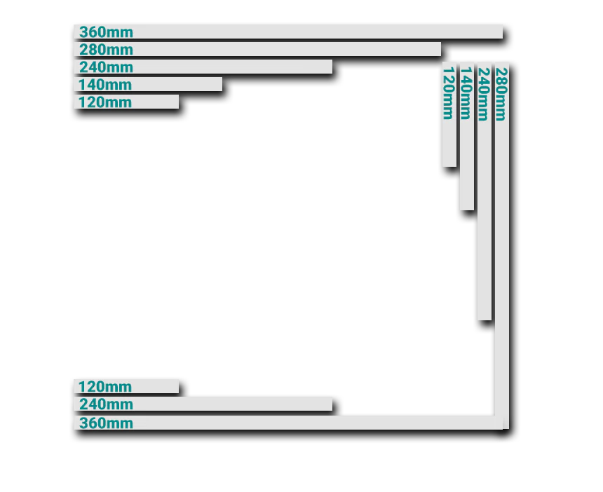 Сверху: 120/140/240/280/360 мм