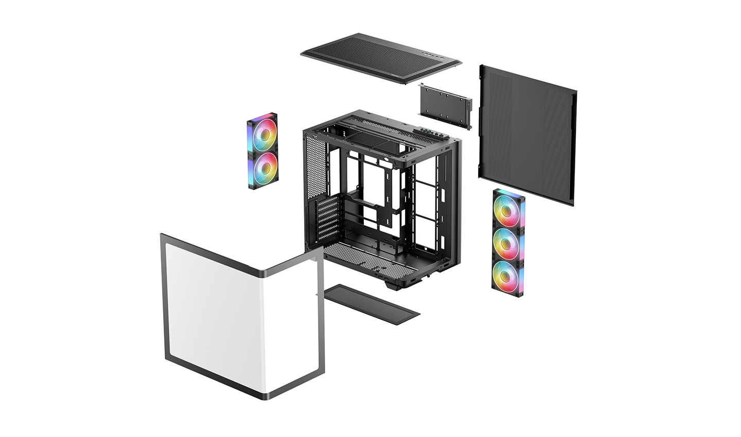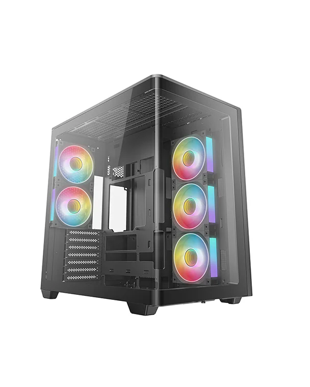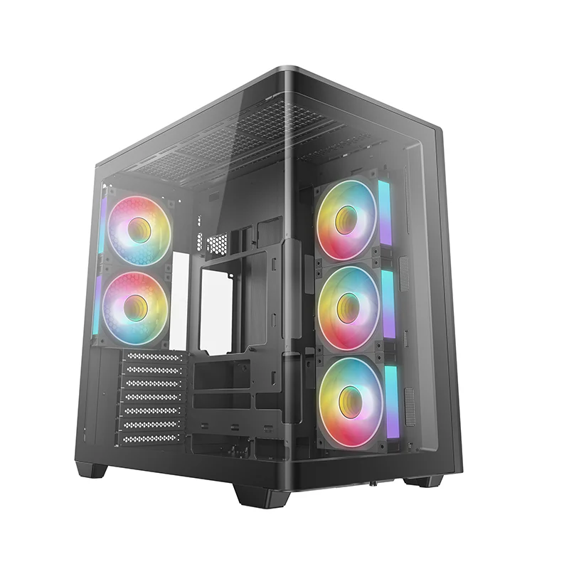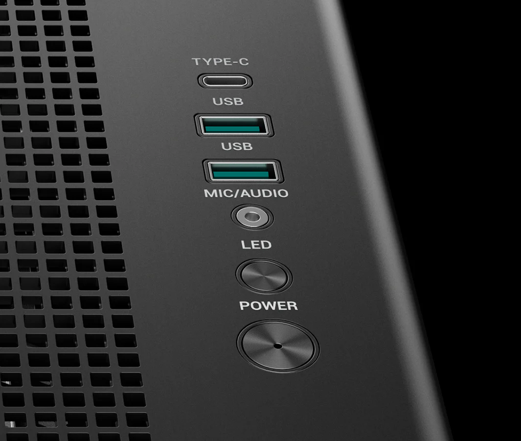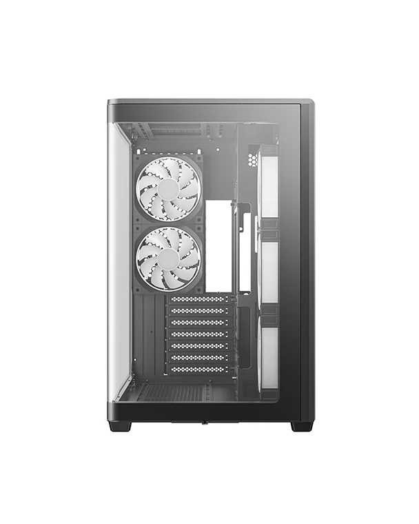 CG590U 5F — это просторный панорамный корпус с изогнутым стеклом и двухкамерной конструкцией. За счет пяти предустановленных вентиляторов ARGB он полностью готов обеспечивать мощный воздушный поток и яркую подсветку.