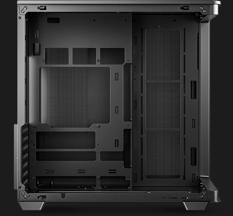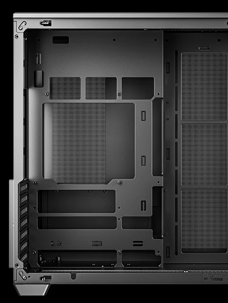 Внутри корпуса более чем достаточно места для первоклассных комплектующих: в него можно установить процессорные кулеры высотой до 160 мм, видеокарты длиной до 410 мм и блоки питания ATX длиной до 210 мм.