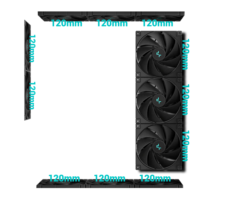 Корпус CG590U 5F предоставляет свободу в выборе конфигурации системы охлаждения за счет поддержки радиаторов длиной 360 мм на верхней, боковой или нижней панели. При полностью воздушном охлаждении в него можно установить до одиннадцати вентиляторов, которые обеспечат мощный воздушный поток.