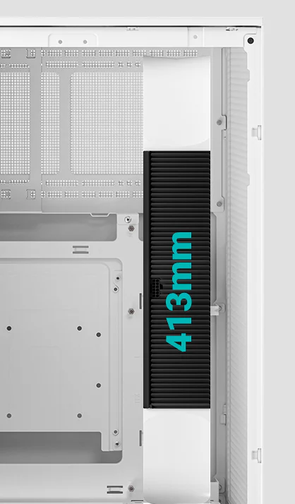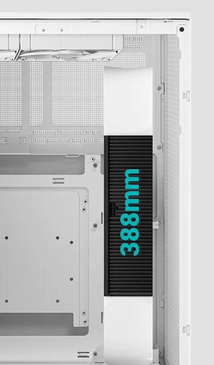 Корпус CH270 WH основан на модернизированной серии CH170. Он отличается расширенной поддержкой ключевых компонентов и вмещает полноразмерные видеокарты длиной до 388 мм — или даже до 413 мм, если не устанавливать вентилятор в верхней части. Также в этот корпус можно установить блок питания ATX PS2 благодаря съемному кронштейну, который освобождает место для удобной прокладки кабелей.