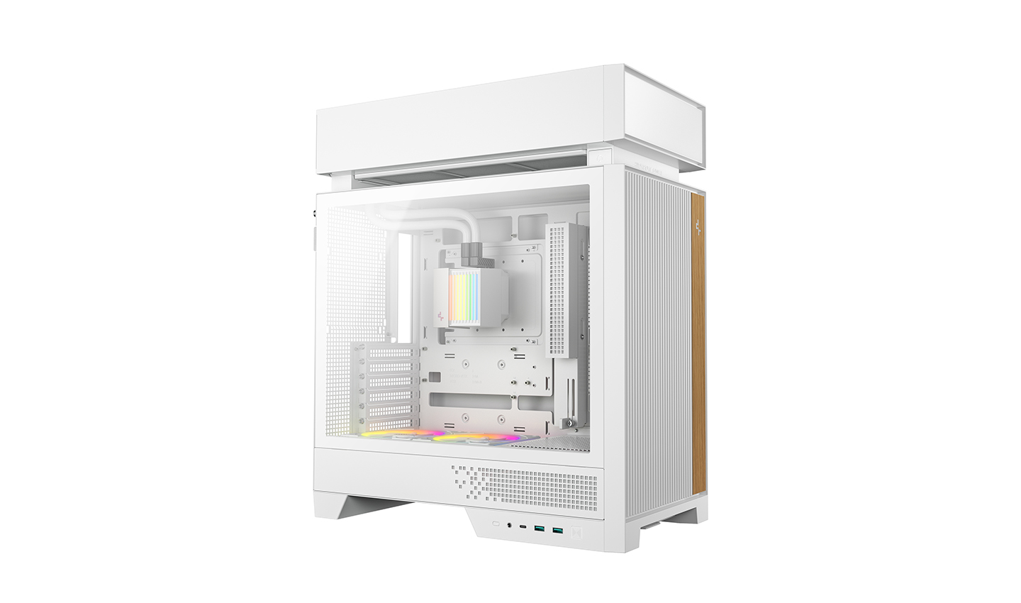 CL6600 WH переосмысливает дизайн корпуса для эры жидкостного охлаждения. Благодаря физическому разделению тепловых зон и путей воздушного потока он предотвращает накопление тепла и перекрестные помехи, которых невозможно избежать в традиционных конструкциях. Он также оснащен усовершенствованным 360-мм жидкостным охладителем и двумя нижними вентиляторами ARGB, обеспечивающими высокую производительность и создающими яркий интерьер.