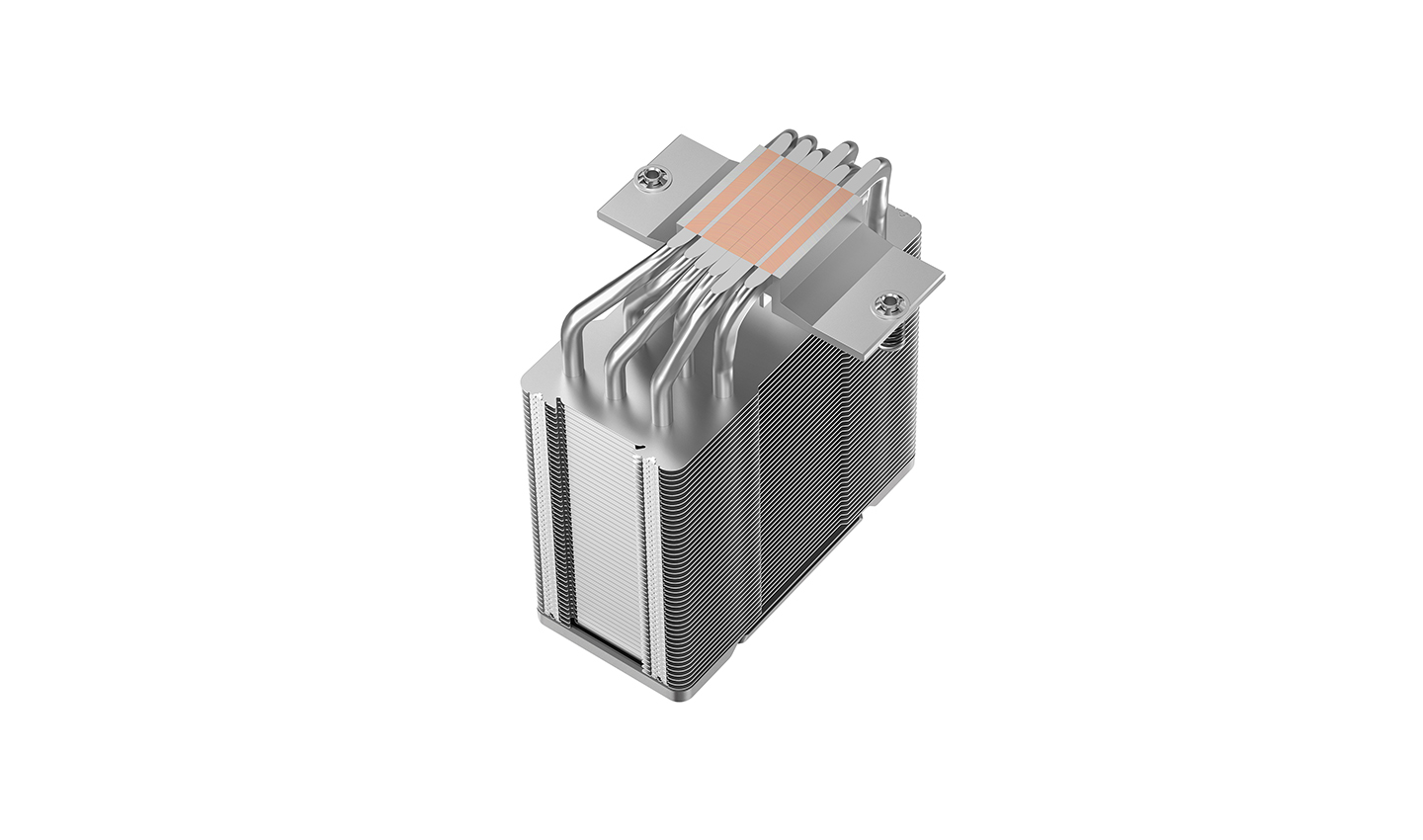 В дизайне AG600 осталась фирменная матрица ребер, а также появилась изысканная верхняя крышка, завершающая премиальный образ модели. В этом кулере по-прежнему используется проверенная однобашенная архитектура с шестью тепловыми трубками, а RGB-подсветка уступила место элегантному и строгому облику без лишних деталей.