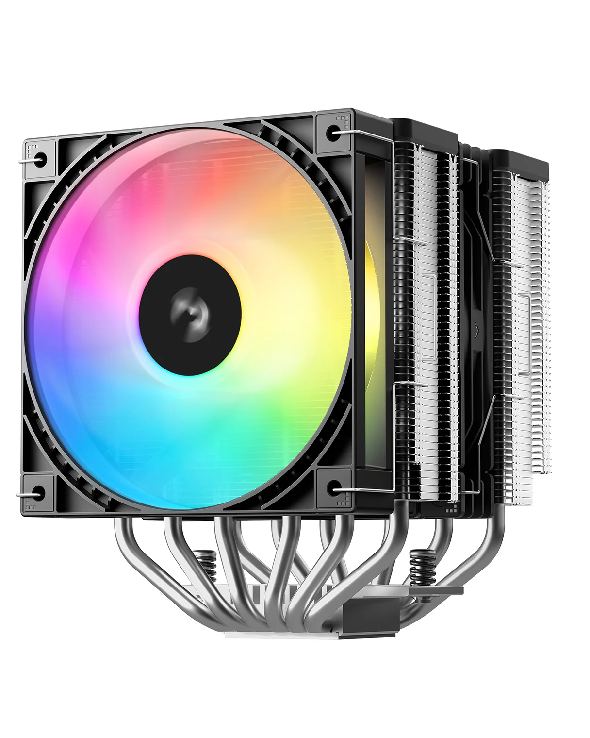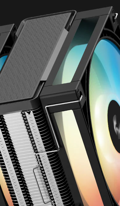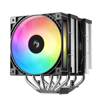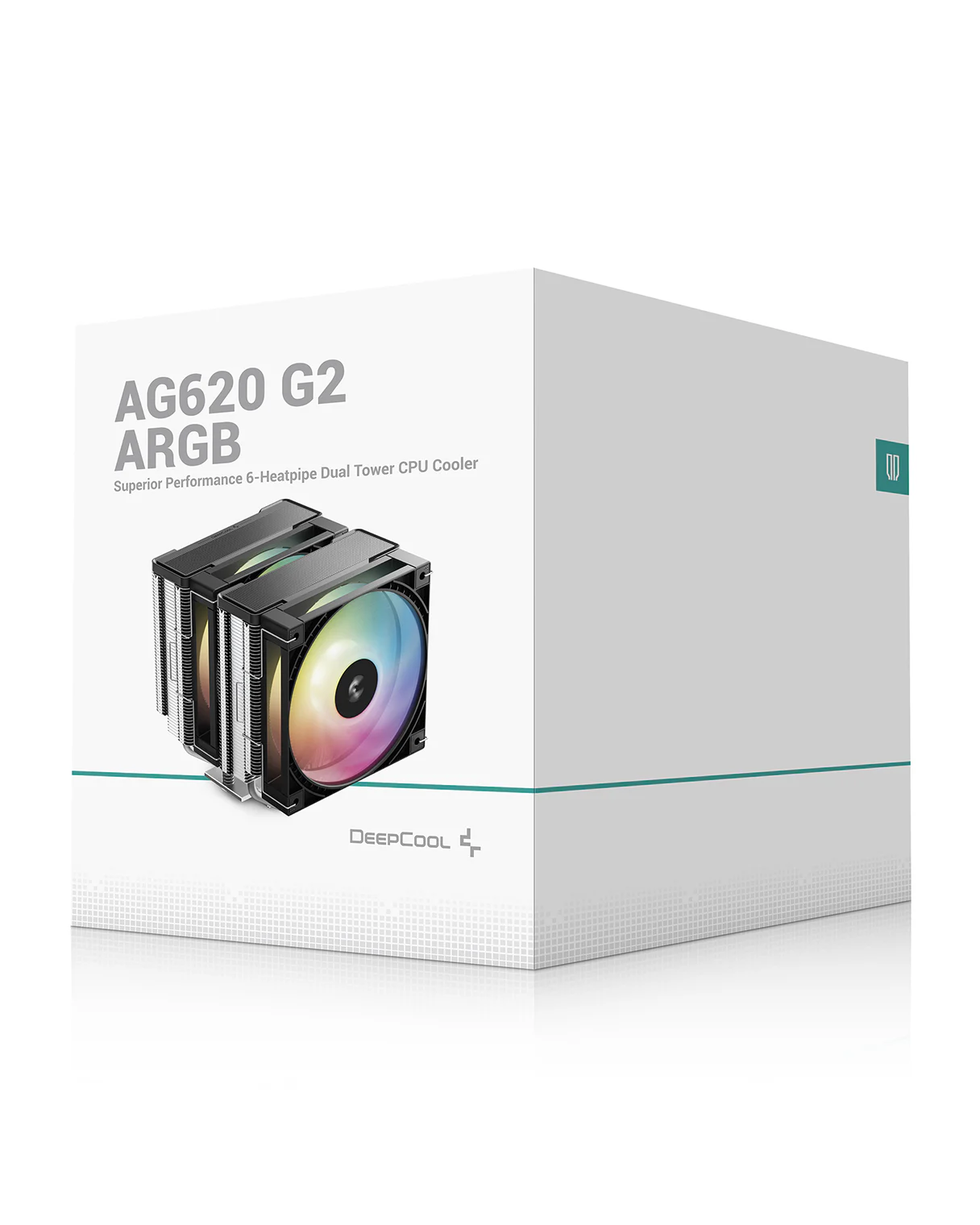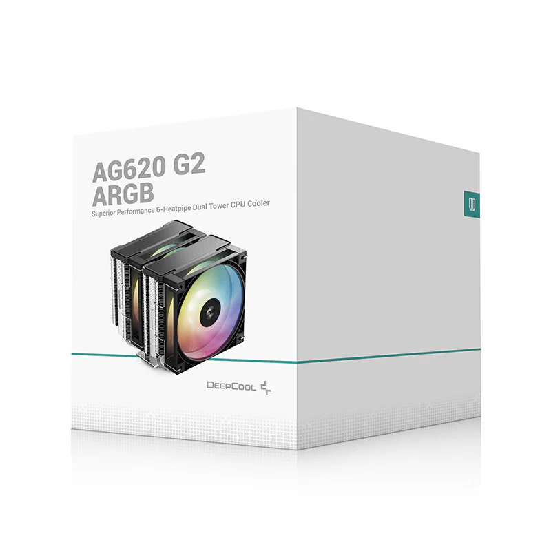 Модернизированный AG620 G2 ARGB второго поколения с улучшенными характеристиками и смелым новым дизайном поднимает планку для воздушных кулеров с двумя башнями. Шесть тепловых трубок в двухбашенном радиаторе с плотным оребрением и два точно отрегулированных ARGB ШИМ-вентилятора диаметром 120 мм обеспечивают мощный воздушный поток и эффективную теплопередачу.