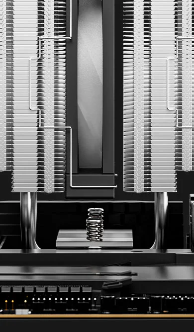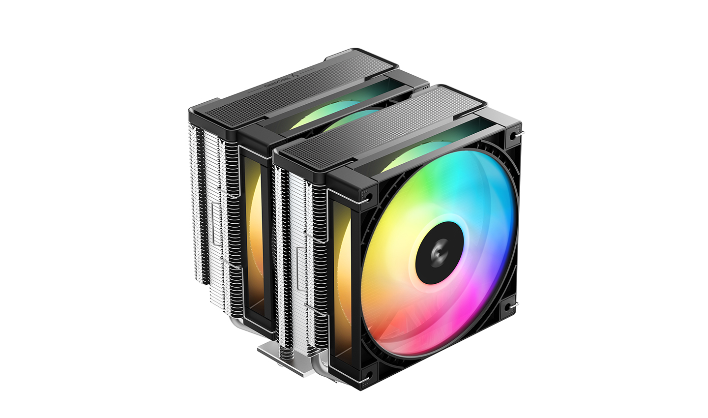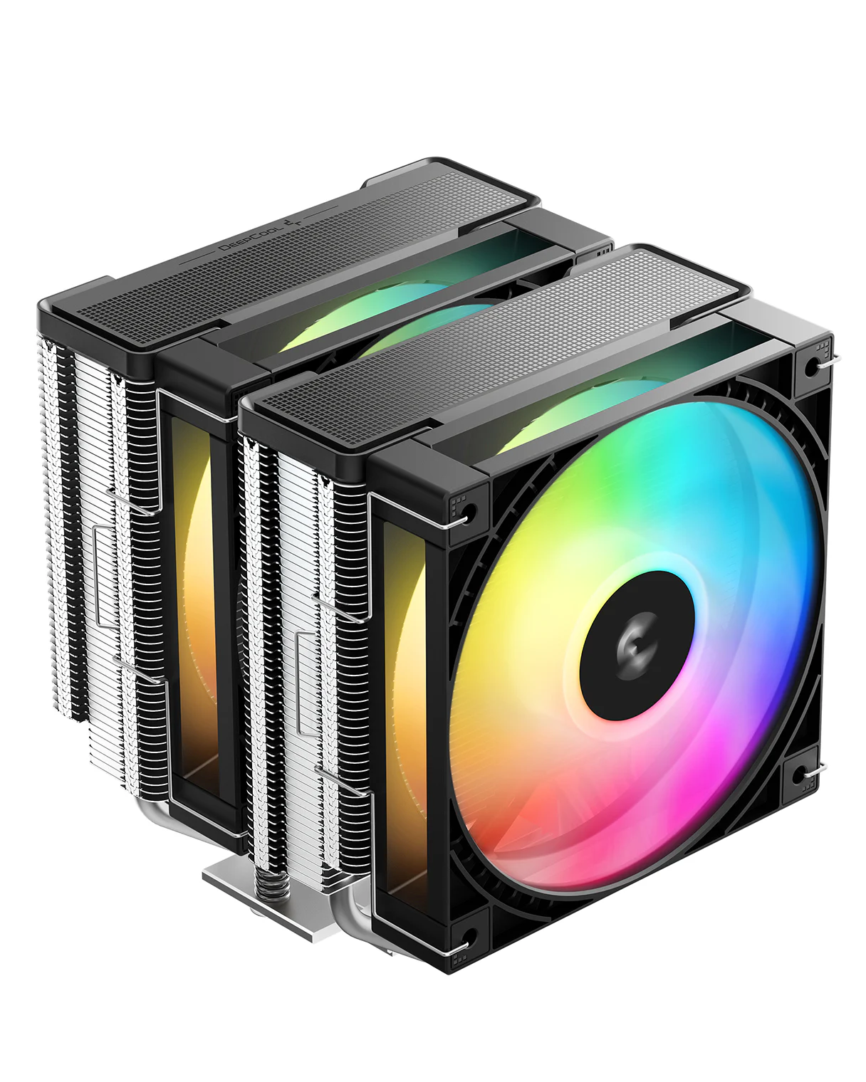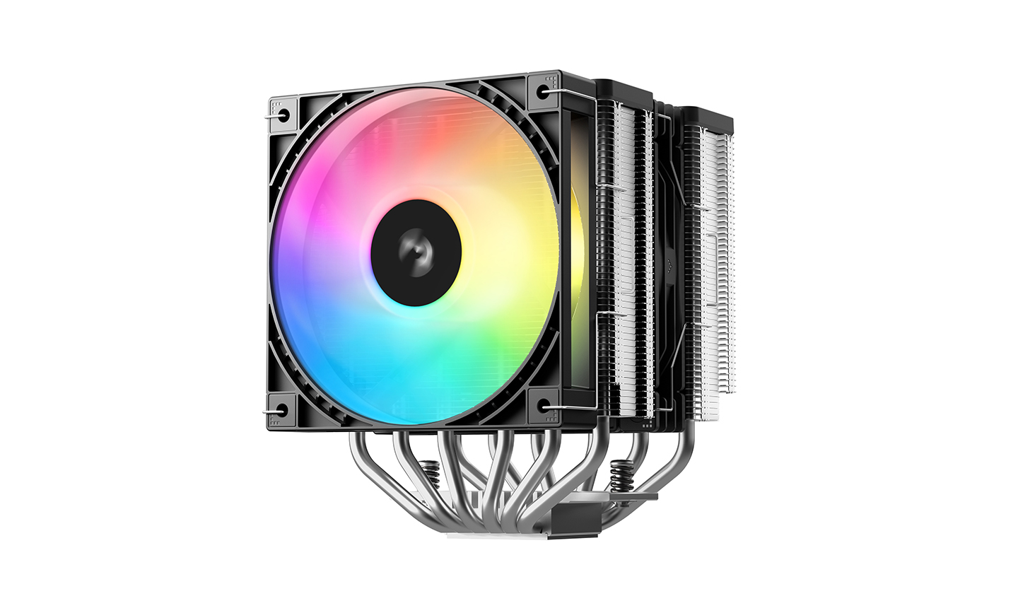 Модернизированный AG620 G2 ARGB второго поколения с улучшенными характеристиками и смелым новым дизайном поднимает планку для воздушных кулеров с двумя башнями. Шесть тепловых трубок в двухбашенном радиаторе с плотным оребрением и два точно отрегулированных ARGB ШИМ-вентилятора диаметром 120 мм обеспечивают мощный воздушный поток и эффективную теплопередачу.